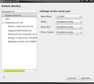 Seleccione el dispositivo adecuado, en nuestro caso, impresora de red, Windows Printer via SAMBA, ya que en el equipo WIN7 se cuenta con una impresora compartida.